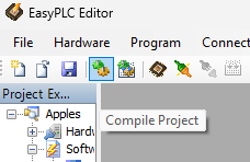 To compile the project, select Program -> Compile from the menu or use the Compile Project icon on the toolbar. The editor compiles each sequence individually.