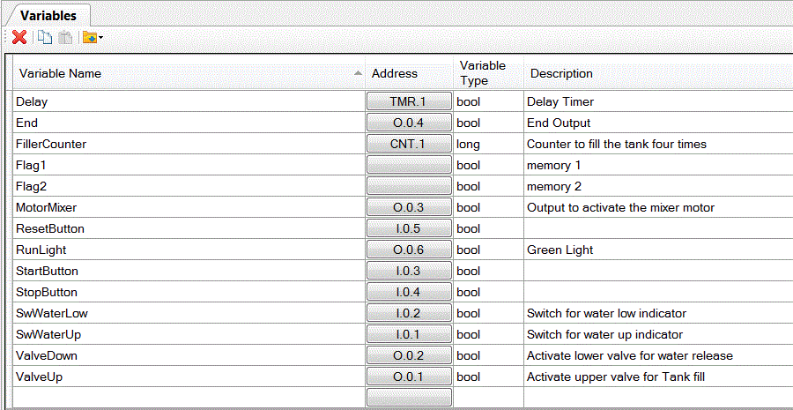 Variables are fundamental entities in EasyPLC programming, acting as the primary elements for operations such as comparisons, assignments, and logic control. Using descriptive variable names enhances the readability and maintainability of the control program.