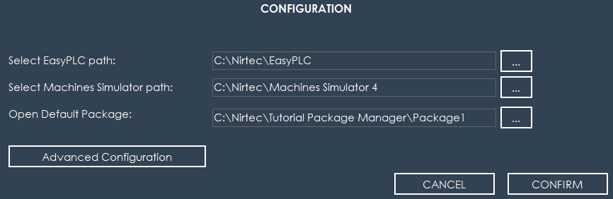 • Select EasyPLC Path: Click the folder icon on the right to browse and select the directory where EasyPLC is installed. This allows the Tutorial Manager to automatically open the editor and load the proposed solutions.
