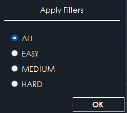 • Filters: Opens a window to filter the exercise list based on their level of difficulty (Basic, Medium, or Complex).